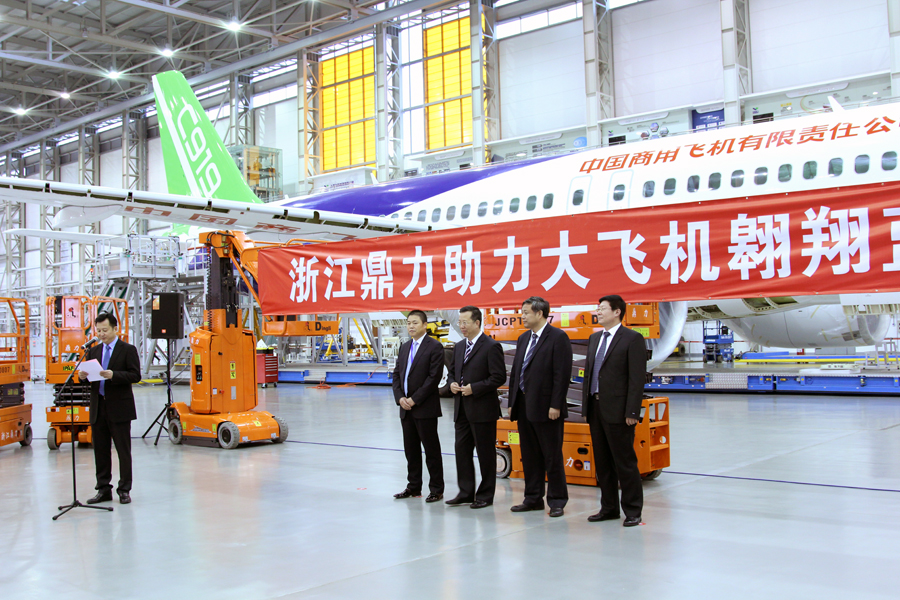 鼎力作为国内在上交所上市、亚洲高空作业平台行业产品系列全、规格多的智能高空作业设备制造商之一,有能力为中国商飞量身定制满足飞机总装制造、检修、维护等高空作业需求的智能、高效、安全、环保的高空作业平台,助力国产大飞机的总装制造。