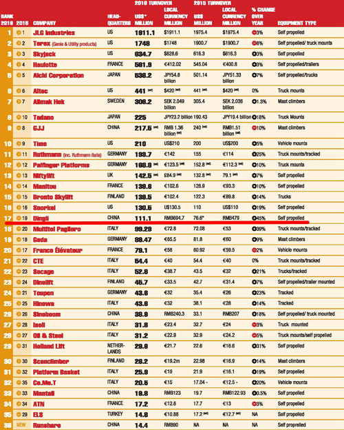 跻身世界前二十强,特别在细分的自行走高空作业平台领域,