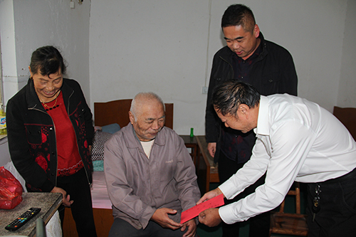 揭牌成立仪式一结束,红鼎基金就随即组织人员到结对村塘北村慰问困难户郭根山、贫困党员胡忠根,送去了浙江