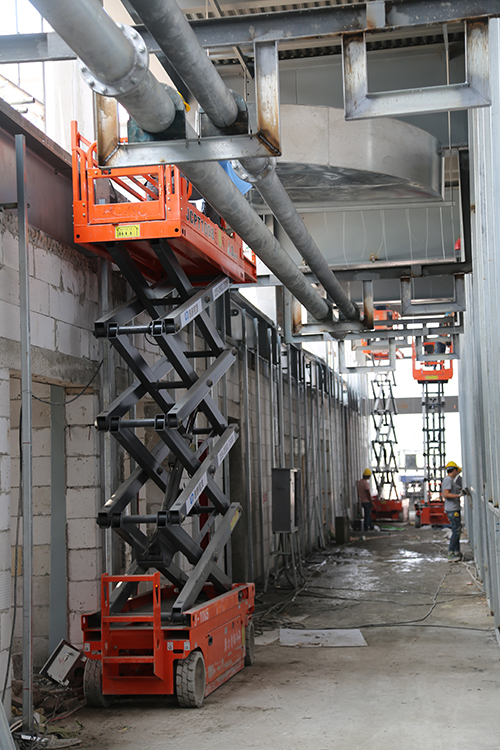 高空作业平台,其主要应用于钢结构焊接和水电气线路、消防设施的安装及室内各种桥架铺设等高空作业。