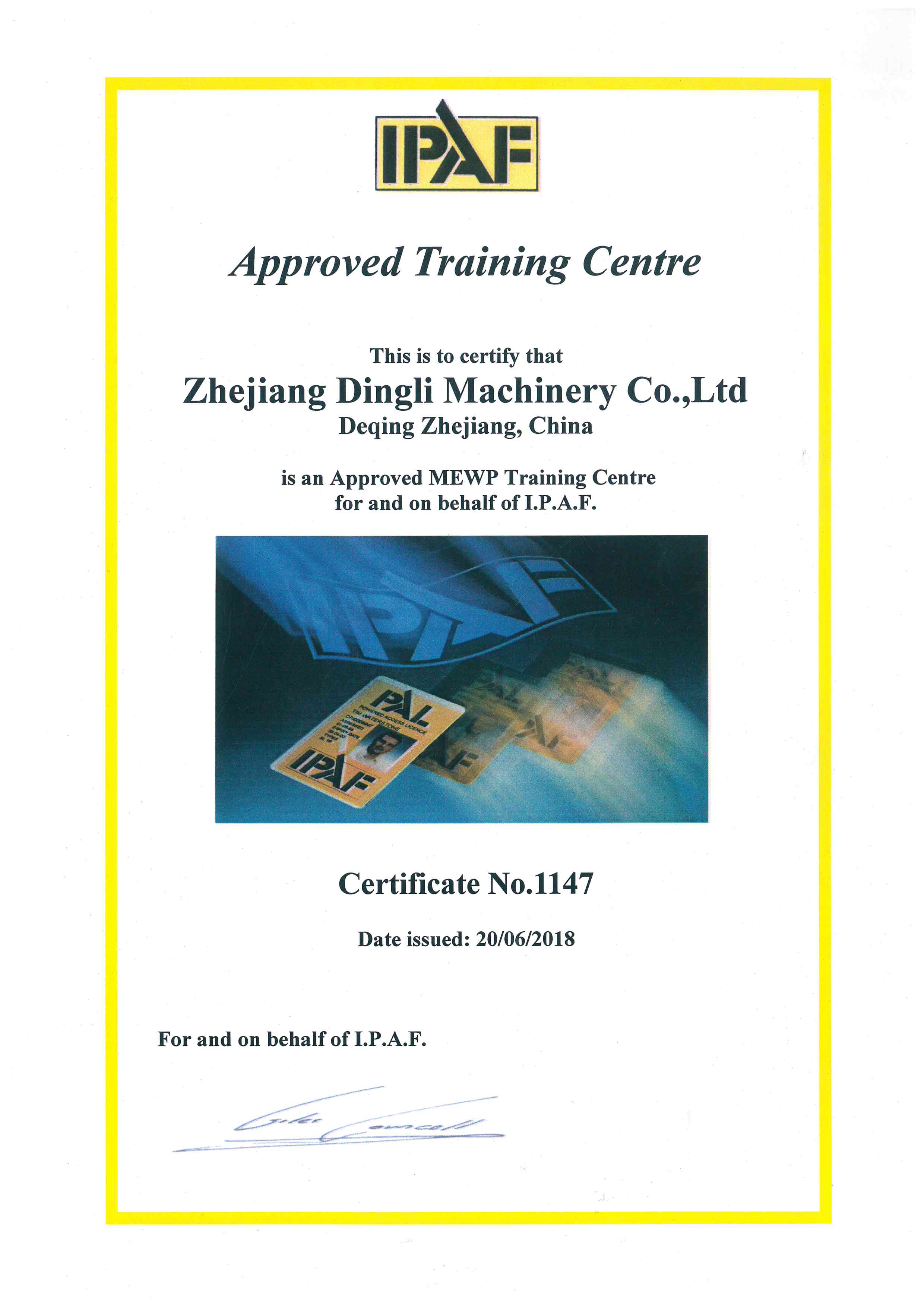 IPAF是一个非盈利性的世界高空作业行业权威组织,致力于在全球范围内推动高空作业设备的安全高效使用,推进了许多与高空作业有关的设计、安全和测试程序。其培训中心是国际上最受认可的高空作业权威培训机构之一。