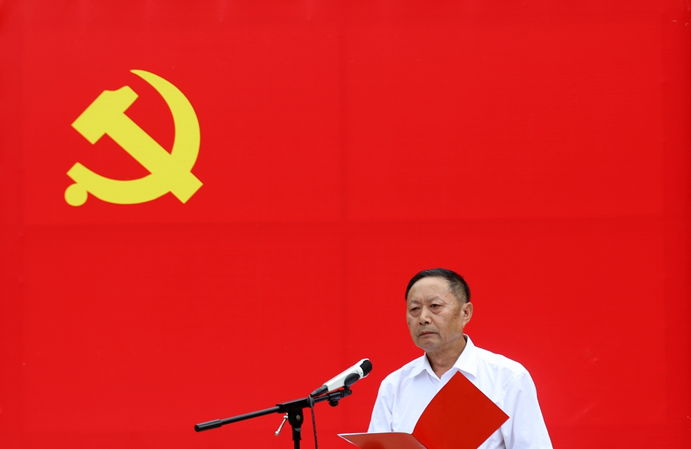 我志愿加入中国共产党,拥护党的纲领,遵守党的章程 纪念碑前,在革命先辈的见证下,面对鲜红的党旗,党员们举起右手,重温入党誓词,一字一句,声音洪亮,慷慨激昂,表达了为党的事业奋斗终身的信念与决心。
