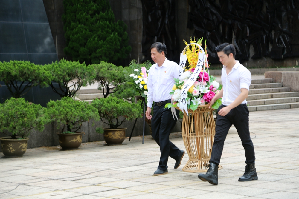 随后,全体党员怀着无比崇敬的心情向革命烈士敬献花篮,以此表达同志们对革命先烈的诚挚敬意和深切缅怀。