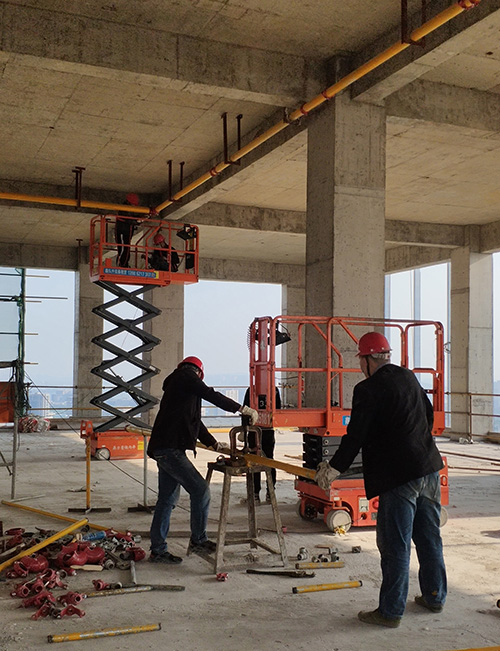 该项目内部楼层间,普遍层高为3~4米,中大型高空作业平台大材小用,结合实际作业环境,该项目选取了通过性强、可灵活进出客梯的小剪叉。