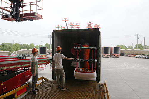 换上特制轮胎,鼎力大载重臂式系列准备装柜