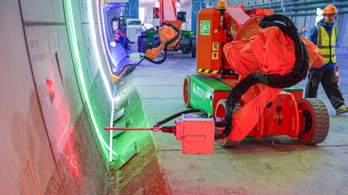 近期,随着项目推进,隧道内部开始进入机电安装、管线敷设阶段,需在坚硬的混凝土管片上进行数以万计的高精度钻孔。粉尘控制、高空作业安全、毫厘不差的精度要求,在密闭、富水的超长隧道空间中,被无限放大。