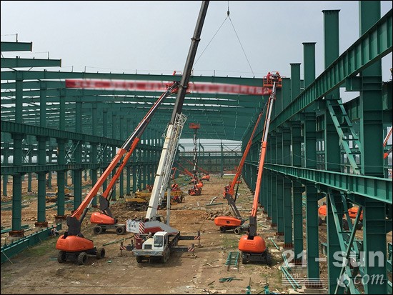 鼎力再次开启兵团作战模式,几十台高空作业平台通过国内租赁公司进驻某大型施工工地,助力钢结构厂房建设。放眼望去,耀眼的