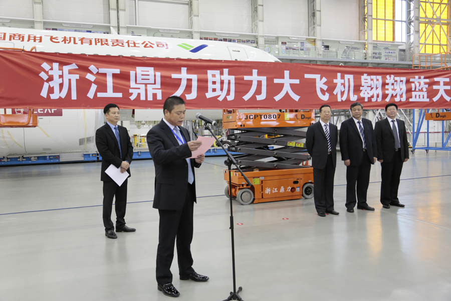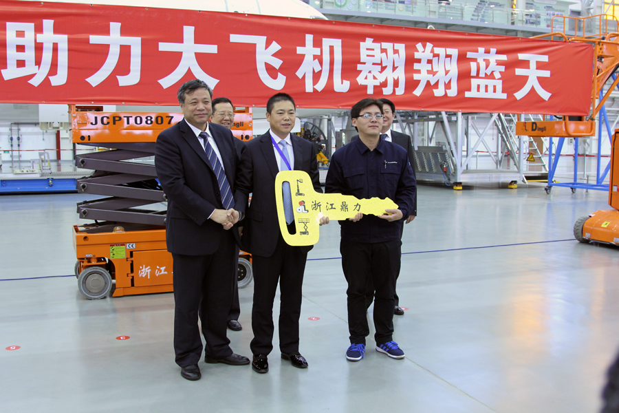 鼎力将持续为中国商飞提供更多智能、安全、高效、环保的高空作业平台,助力中国大飞机的总装制造。中国商飞公司总经理助理兼上飞公司总经理沈卫国先生对浙江