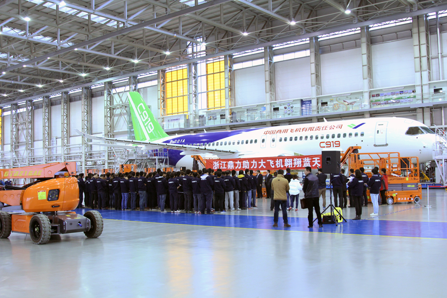 2015年11月24日,在中国商用飞机有限责任公司的总装制造中心上海浦东基地内,浙江
