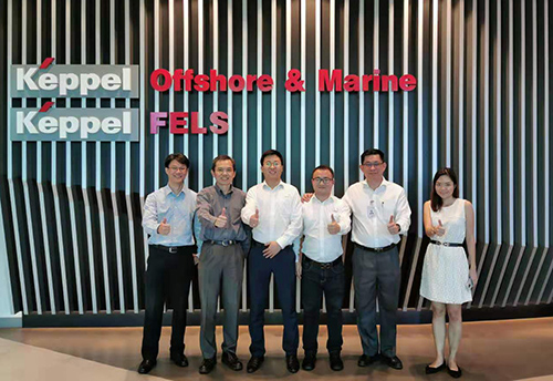 鼎力亚洲区销售经理韩华军先生(左三)一行与keppel Sea Scan总经理林亚清先生(右二)合影