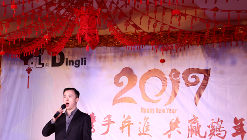 董事长许树根发表了热情洋溢的新年致辞。他首先向公司全体员工、员工家属致以新春的祝福和诚挚的问候。董事长许树根充分肯定了全体员工在2016年推进公司整体工作中付出的努力,对大家一年来的辛勤劳作表示衷心的感谢,希望公司全体员工在新的一年里团结奋进,再创佳绩。