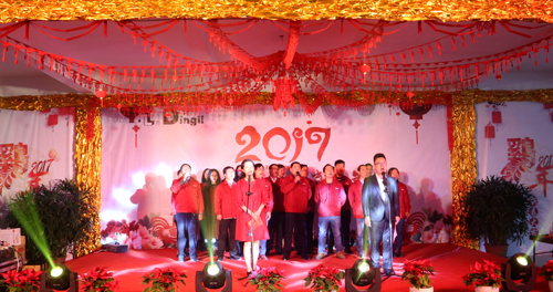 时光荏苒,又是一季;携手并进,共赢鸡年!1月8日,公司迎新联欢会隆重举行,董事长许树根、嘉宾代表及全体员工在公司欢聚一堂,共贺鸡年新春。