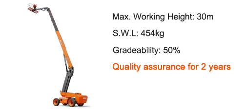 上述鼎力的10款臂式产品,直臂式最大负载能力可达454kg,曲臂式最大负载能力可达300kg,是业内30米工作高度下高负载能力中的佼佼者。