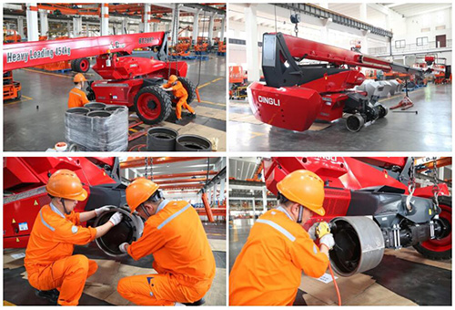换上特制轮胎,鼎力大载重臂式系列准备装柜