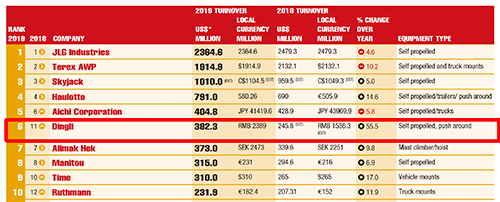 鼎力是全球排名第6的高空作业平台制造商(Access M20),产品涵盖直曲臂、剪叉、桅柱等系列,包括高米数臂式在内,秉承绿水青山就是金山银山的可持续发展理念,已实现绿色电动化全覆盖,无噪音、零排放。