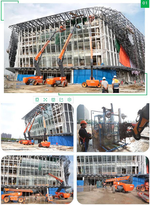 在鼎力臂式的协作下,大吸力玻璃吸盘车日均装配玻璃超13块,单日最高16块,仅需3~4人同时作业,较传统吊装8~10人单日装配玻璃最高10块相比,大大节省人力成本,提升了效率,安全性也大幅提升。
