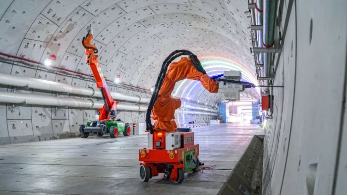 近期,随着项目推进,隧道内部开始进入机电安装、管线敷设阶段,需在坚硬的混凝土管片上进行数以万计的高精度钻孔。粉尘控制、高空作业安全、毫厘不差的精度要求,在密闭、富水的超长隧道空间中,被无限放大。